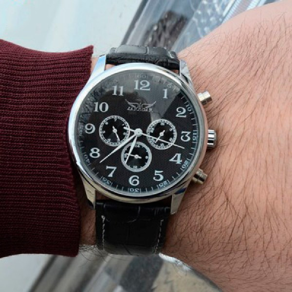 Jaragar Elite Black — это стильные часы с ярким классическим дизайном, которые идеально дополнят любой ваш образ. Эти часы станут не просто аксессуаром, а настоящим украшением вашего стиля, подходя как для делового костюма, так и для повседневной одежды.