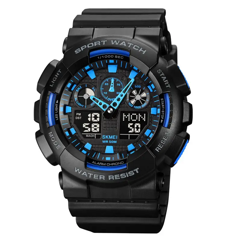 SKMEI представляет наручные тактические часы модели 1832 в элегантном черном исполнении. Эти часы оснащены комбинированным циферблатом, который объединяет в себе аналоговые и электронные элементы. Корпус, выполненный из надежного поликарбоната, обеспечивает отличную водозащиту на глубине до 50 метров, что позволяет не только мыть руки, но и плавать в мелкой воде – идеальный выбор для активных мужчин!