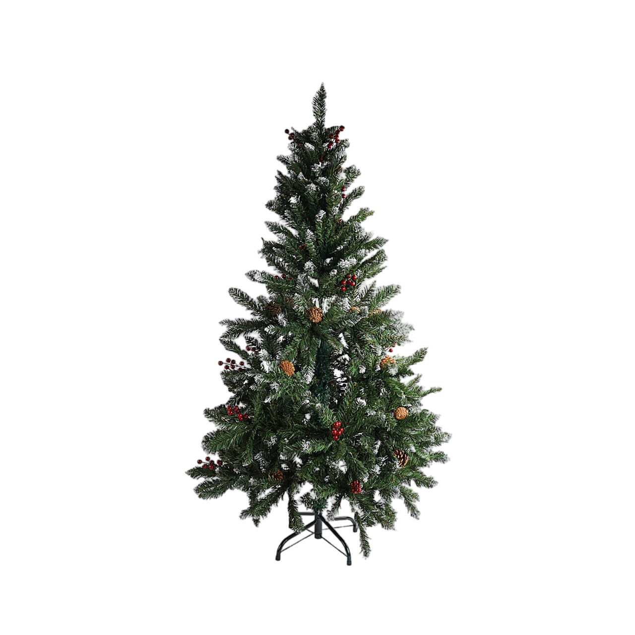 Елка искусственная Yufeng, высота – 125 см, разборная, украшенная ягодами и шишками. Зеленый (160888)