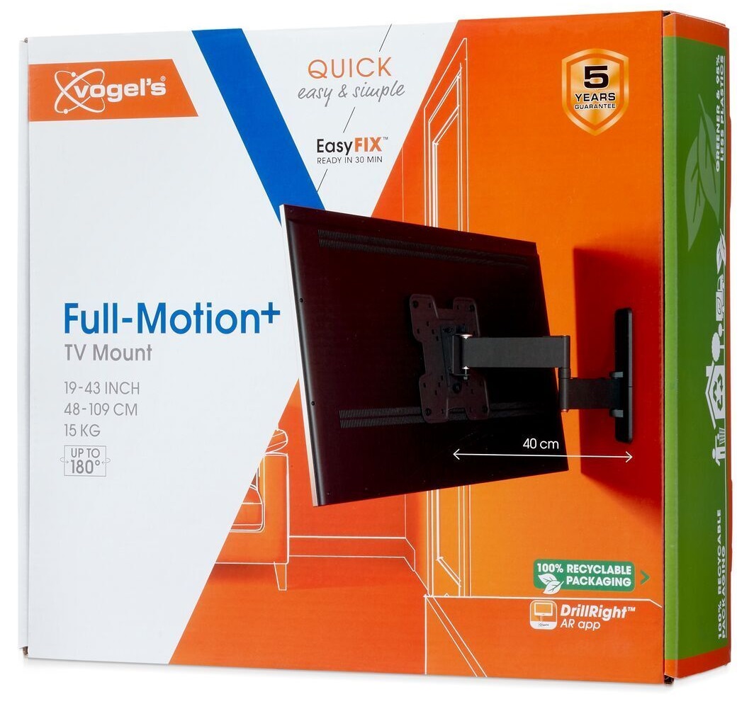 Выбирая Vogel's, вы выбираете долговечность и безопасность. Настенные крепления TVM 1243 Black сертифицированы TÜV и испытаны на нагрузку, значительно превышающую заявленные характеристики. На это крепление предоставляется 5-летняя гарантия, что подтверждает его надежность.