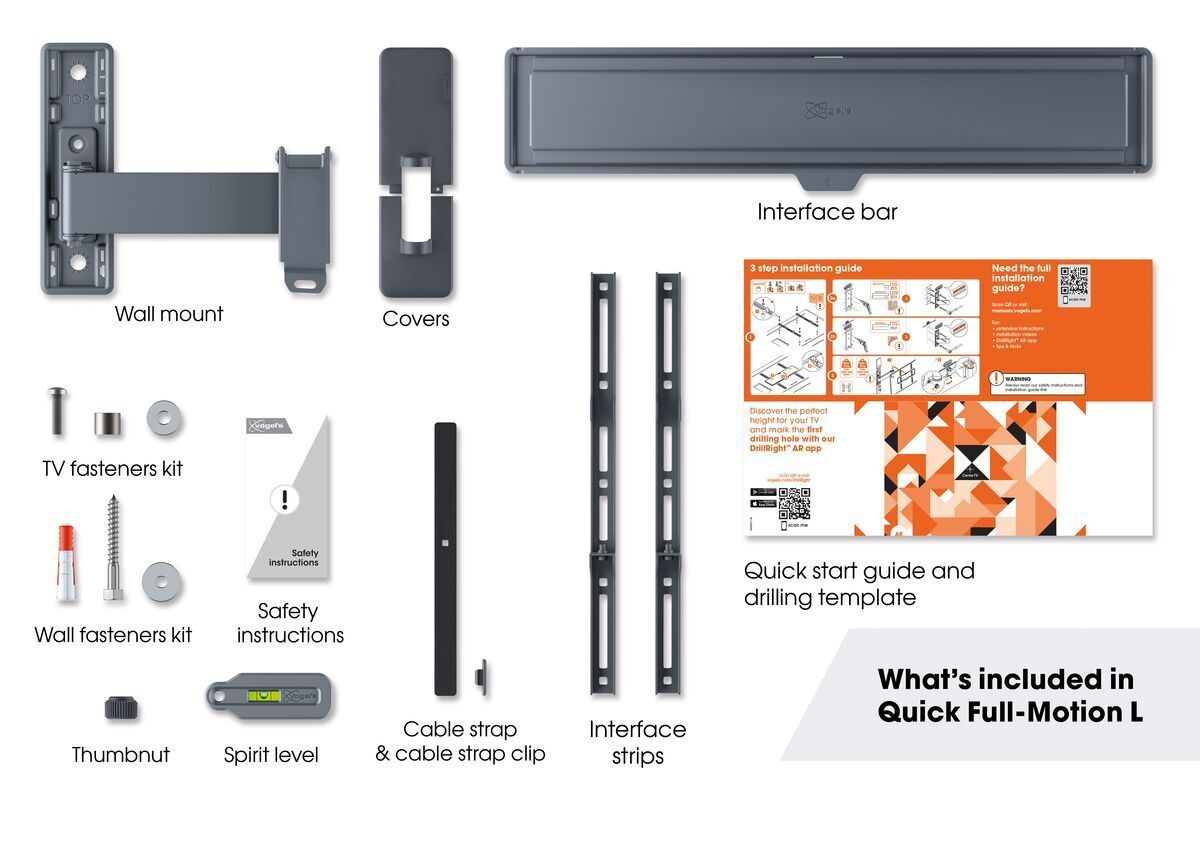 Монтаж крепления Vogel's TVM 1623 не займет больше 30 минут! Благодаря продуманной конструкции вы сможете установить его, следуя простым инструкциям. В случае, если телевизор установлен немного криво, вы сможете легко выровнять его даже после установки.