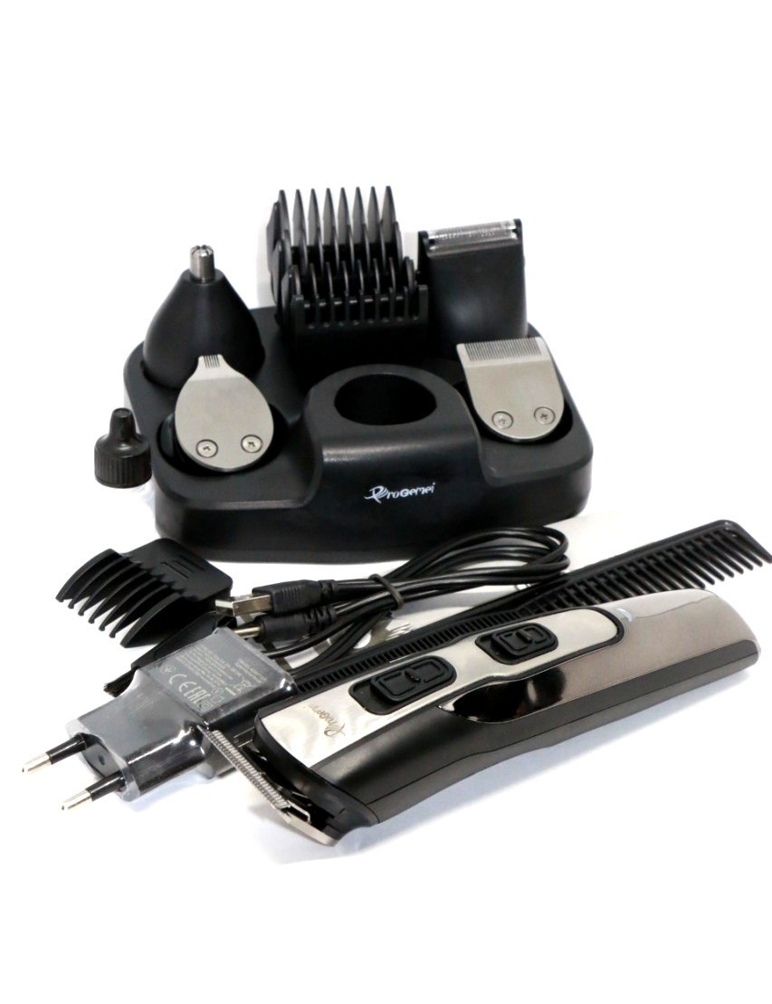 GEMEI GM-592 10 в 1 отличный подарок для современного мужчины, который следит за своей внешностью и любит во всем аккуратность и организованность. На цельной подставке грамотно расположена сама машинка GEMEI GM-592 и сопутствующие ей аксессуары. Каждая из имеющихся с десяти насадок в наборе имеет свое строгое назначение, благодаря этому комплекту мужчина может поддерживать в идеальном состоянии свои усы и бороду, регулировать длину состригаемых волос, а также деликатно избавляться от лишних волос в носу и ушах.