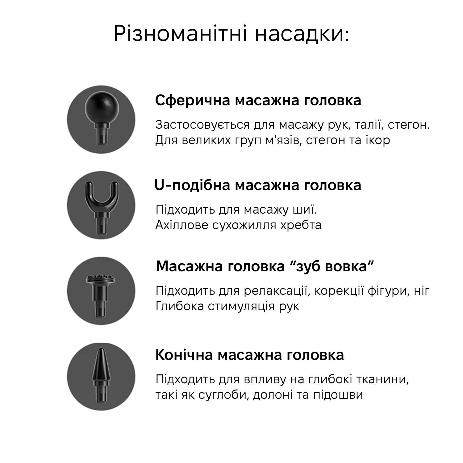 - Головки для массажа: 4 сменные насадки и 1 ремень для массажа