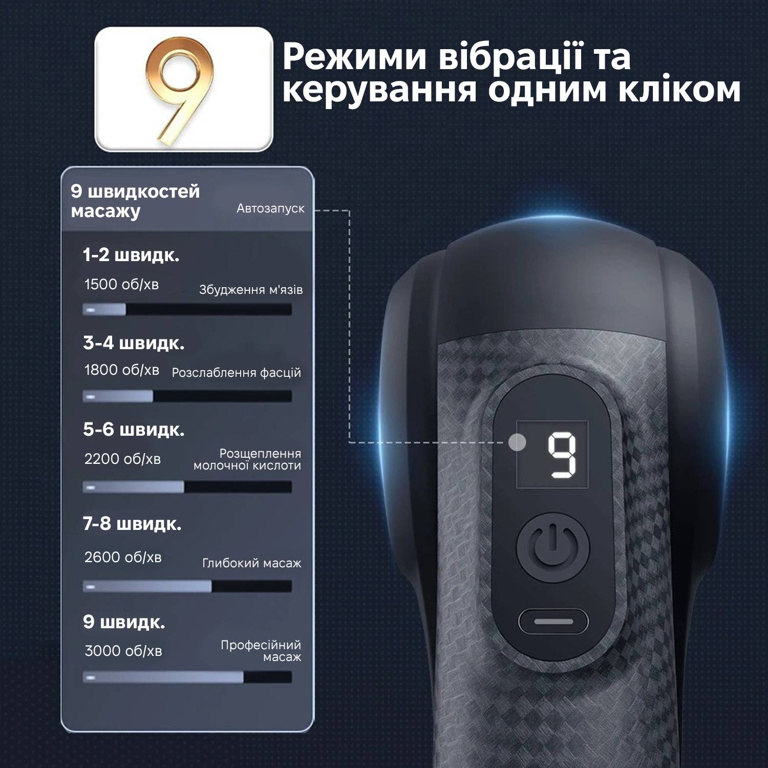В комплект входят девять сменных насадок, каждая из которых предназначена для массажа определённых групп мышц. Эти насадки изготавливаются из высококачественных материалов, что гарантирует комфорт и эффективность во время сеанса массажа.