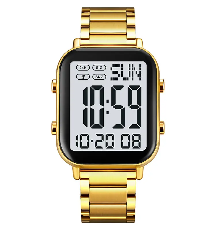 Часы оснащены большим электронным циферблатом, защищённым минеральным стеклом, что гарантирует четкость отображения времени и защиту от ударов. Металлический браслет не только дополняет общий стиль, но и акцентирует ваш хороший вкус. Skmei 2259 Золотистый – это не просто часы, а отражение вашей индивидуальности.