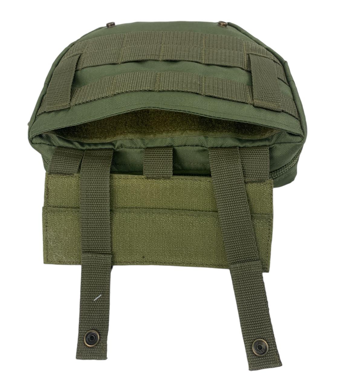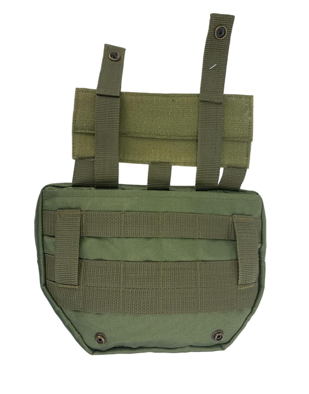 Фронтальная панель с вместительным карманом на широкой молнии, велкро панелью и системой молле. Универсальный агрегатор внутри. Внутренний карман для документов. Карман для баллистического пакета размером 25х17 см. Система липучек, входящая в плитоноску. Крепление на поясе. Крепление к системе MOLLE. Концы креплений MOLLE фиксируются кнопкой. Супер-крепкие швы благодаря использованию армированной нити. Ткань Oxford 600 den PU, полиамидная стропа.