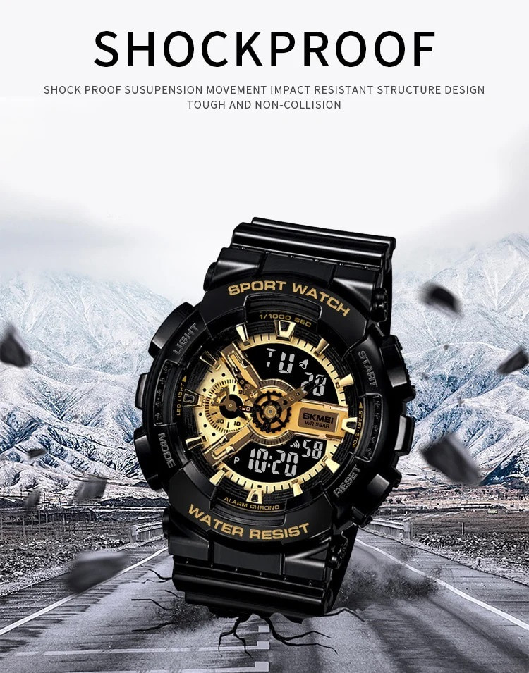 Корпус выполнен из прочного пластика, который обеспечивает отличную ударопрочность и надежную защиту механизма. Такой уровень прочности сделает Skmei 1688 идеальным компаньоном для экстремальных видов спорта и путешествий.