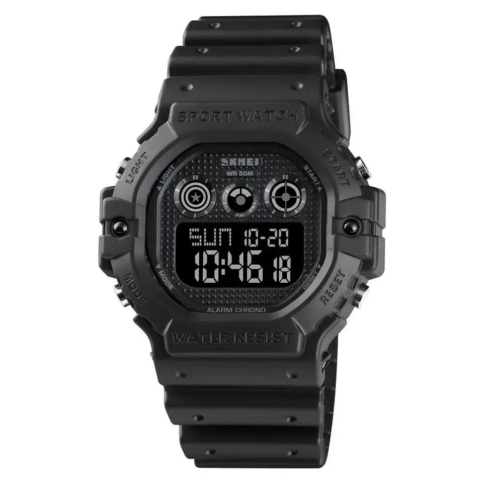 Корпус модели SKMEI 1606 выполнен из прочного пластика, который отлично справляется с износом. Даже при активном использовании, он демонстрирует свою долговечность и надежность, что делает часы идеальными для спорта и повседневной носки.