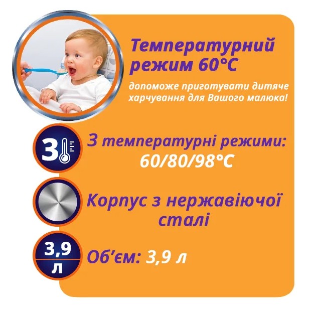 Термопот предлагает три температурных режима: 60, 85 и 98°С. Это позволяет вам выбрать наиболее подходящую температуру для каждого случая. А благодаря функции поддержания температуры, вода долго сохраняет свою степень нагрева, что гарантирует ее готовность в любой момент.