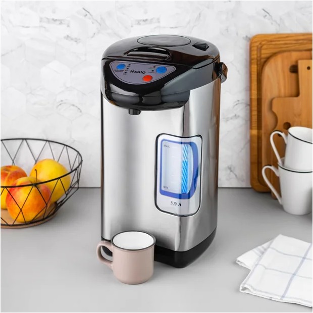 Внутренний корпус термопота выполнен из нержавеющей стали, что обеспечивает долговечность и надежность устройства. Также он оснащен защитой от перегрева и функцией отключения при недостатке воды, что убережет вас от ненужных поломок.