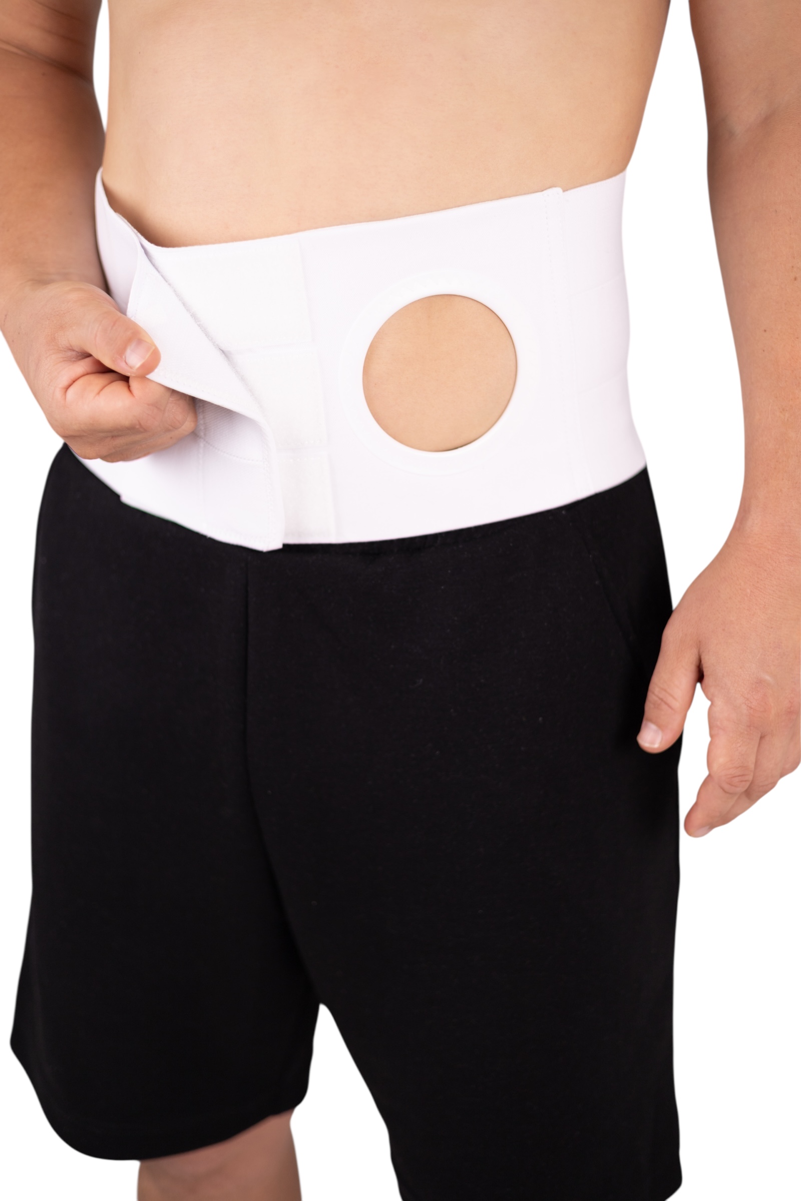 Легкість у використанні. Бандаж легко надягати і знімати завдяки конструкції з отвором для стоми. Його можна використовувати протягом усього часу, коли пацієнт перебуває у вертикальному положенні. Рекомендується надягати бандаж у положенні лежачи перед тим, як піднятися з ліжка.