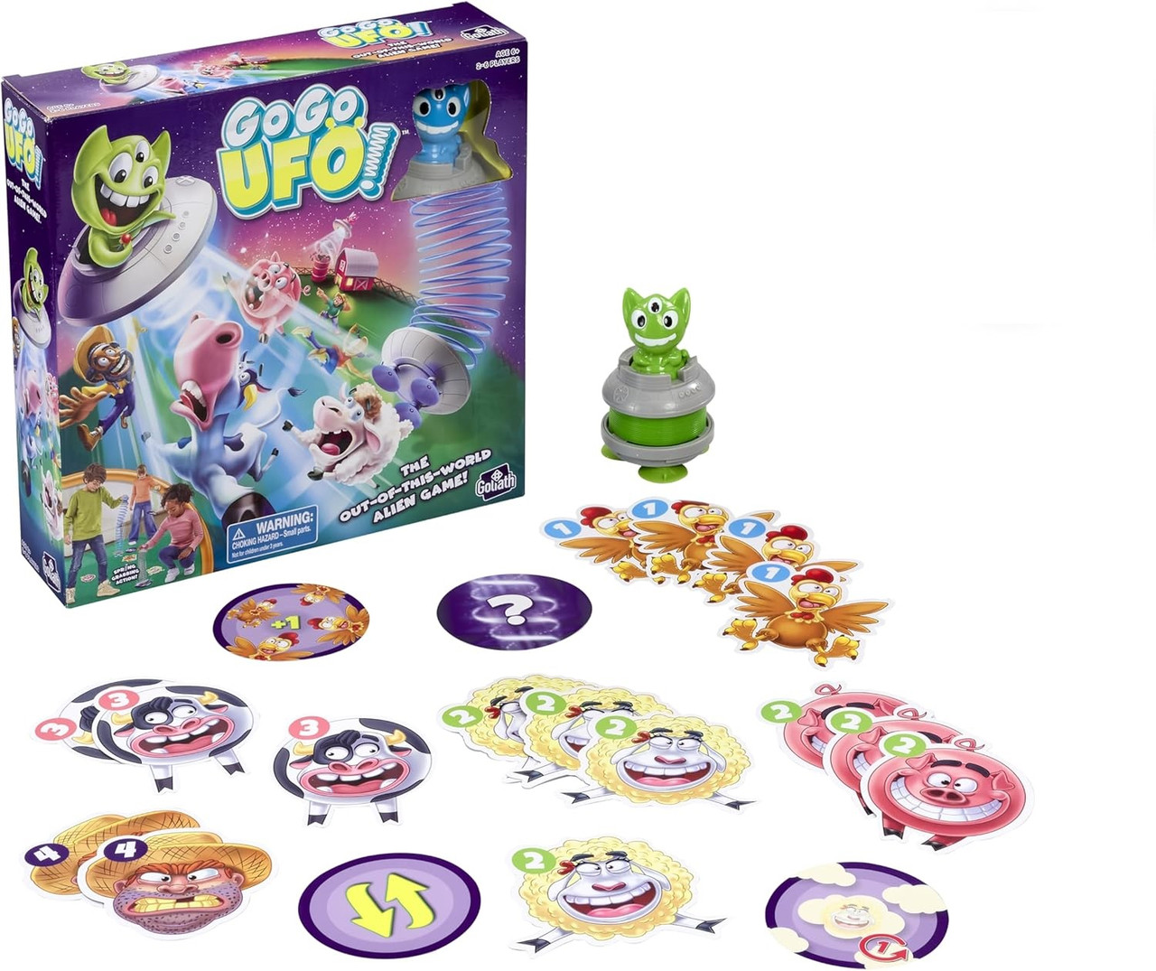 Мета гри "Вперед, вперед, НЛО!" полягає в тому, щоб захопити якомога більше тварин з ферми, використовуючи спеціальні НЛО з присосками, і набрати найбільшу кількість очок. Це весела гра для всієї родини, яка розвиває ловкість і швидкість реакції.