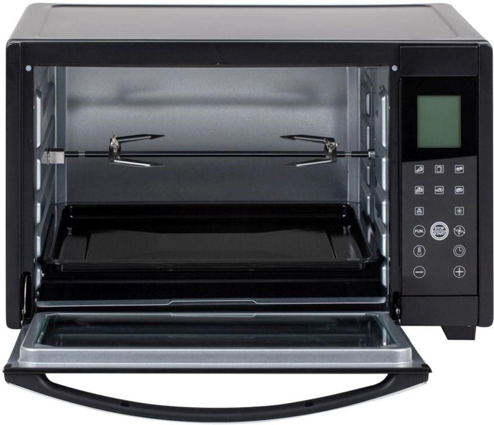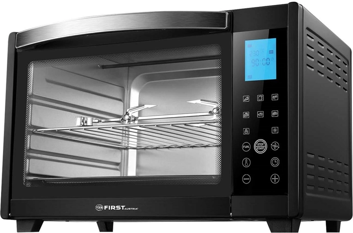 - 1 електропіч First FA-5046-2 чорна з внутрішнім освітленням, противнем, решіткою та піддоном для крошок