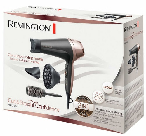 Коли йдеться про сушіння волосся, Remington Curl & Straight Confidence забезпечує вам швидкі та потужні результати щоразу. З потужним повітряним потоком до 90 км/год і високою потужністю в 2200 Вт, ви будете відчувати себе так, ніби вже готові покорити світ з чудовим стилем.