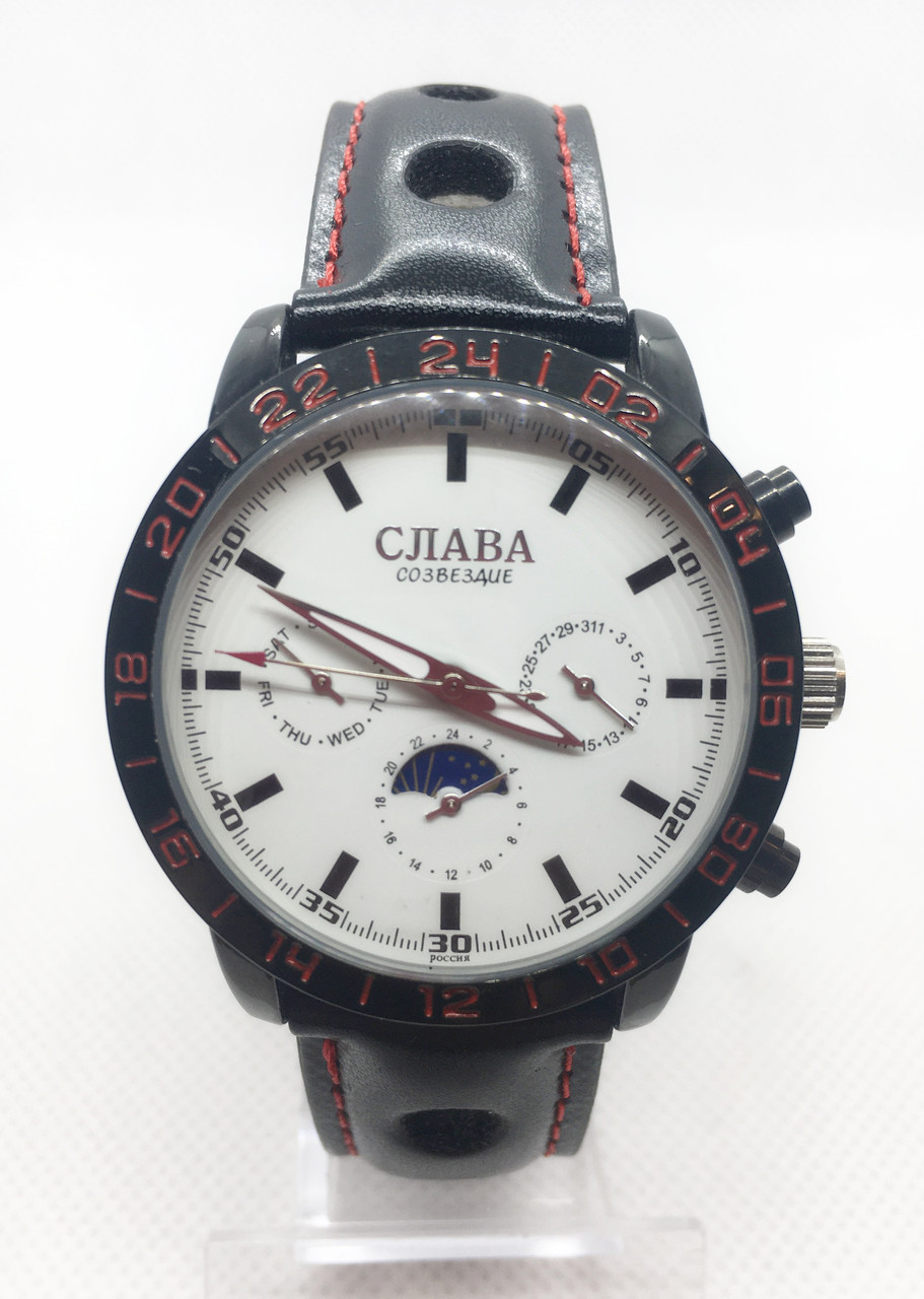 Модель годинників Слава уособлює якість та витонченість. Вони оснащені механізмом з ручним підзаводом, що робить їх особливими. Корпус виготовлений з нержавіючої сталі, яка має високу стійкість до зношення, а ремінець — з натуральної шкіри, що додає елегантності.