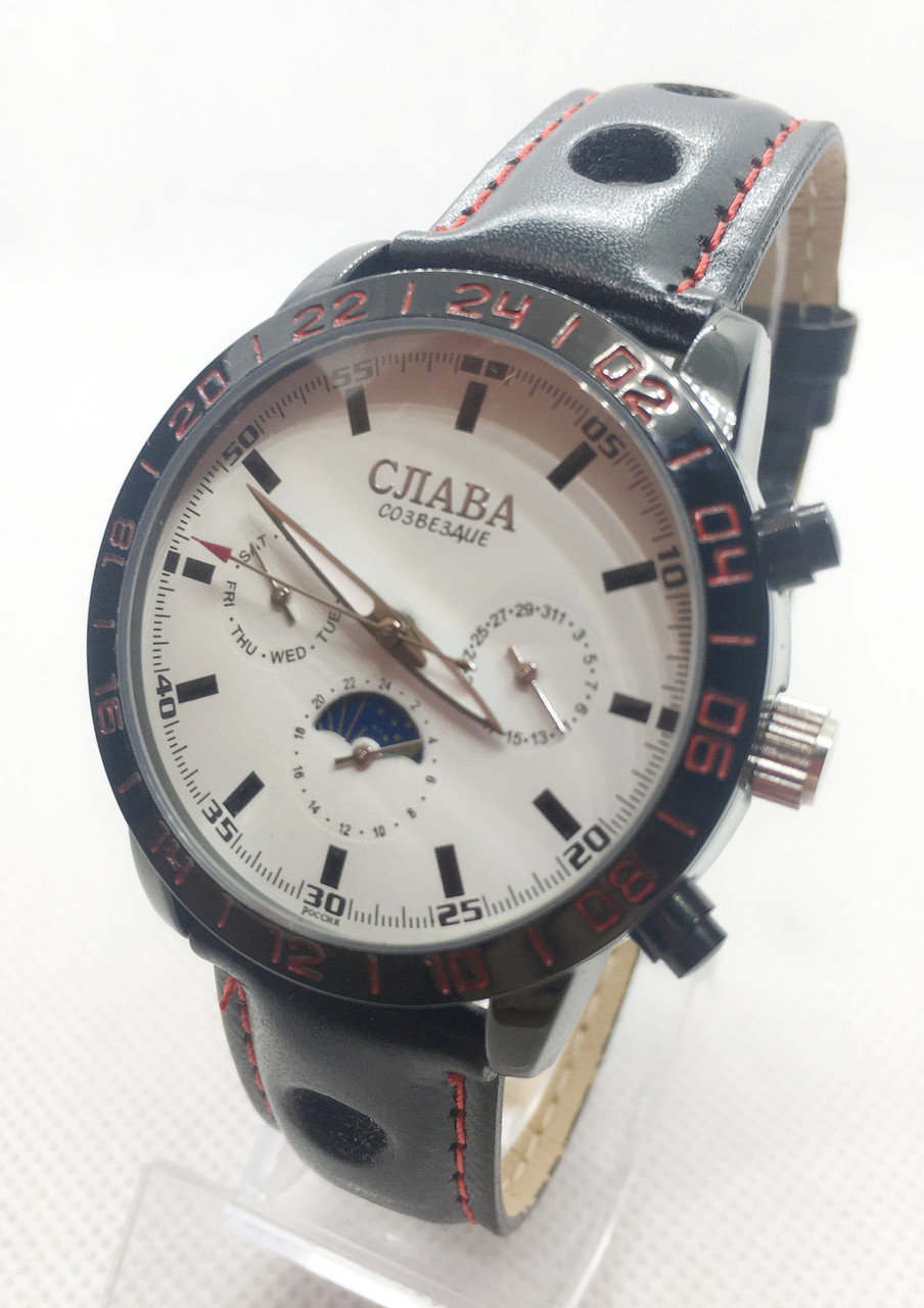 Механічні наручні годинники Слава, чорні з білим циферблатом
