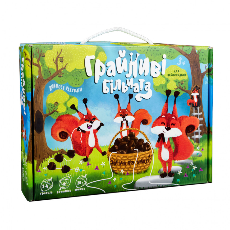Приготуйтеся до захоплюючої пригоди з настільною грою "Ігриві білчата"! Кожен гравець має свою унікальну дорожку, що веде до кошика з смачними горішками. Ваше завдання – зібрати якнайбільше горішків, нанизуючи їх на свою ниточку. Але будьте готові до несподіванок: може трапитися так, що ви зберете три горішки, а потім доведеться поділитися з другом!