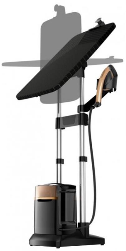 Вбудована 3-позиційна дошка дозволяє гладити горизонтально, вертикально або під кутом 30 градусів. Легка конструкція насадки для відпарювання (вдвічі легша за звичайну праску) гарантує справжній комфорт у використанні. Із завдяки технології Smart Protect, можна гладити без додаткових налаштувань і ризику пошкодження тканини.