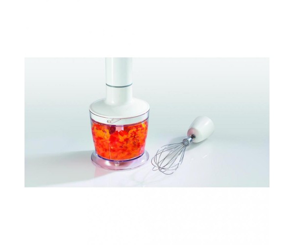 У комплекті з блендером ви також отримаєте металевий вінчик для взбивання, що розширює можливості приготування. А для точної дози інгредієнтів, у комплект включено мерний стакан об'ємом 0,5 літра, що забезпечить зручність під час готування.