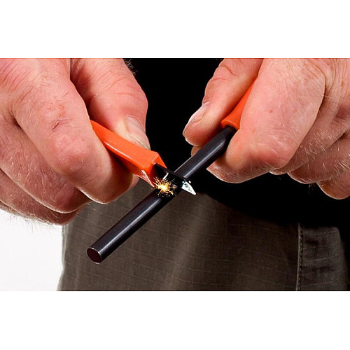 Цей пристрій складається з двох частин, з'єднаних нейлоновим шнурком, що забезпечує зручність використання та зберігання. Вогонь отримується завдяки «скребучому» руху гранями металевого кресала по поверхні обпалювача. Іскри, які виникають в процесі, мають вражаючу температуру. Вони набагато вищі, ніж у звичайного сірника, що дозволяє ефективно запалювати сухостій, дерев’яну тріску та тонкі сухі гілочки.