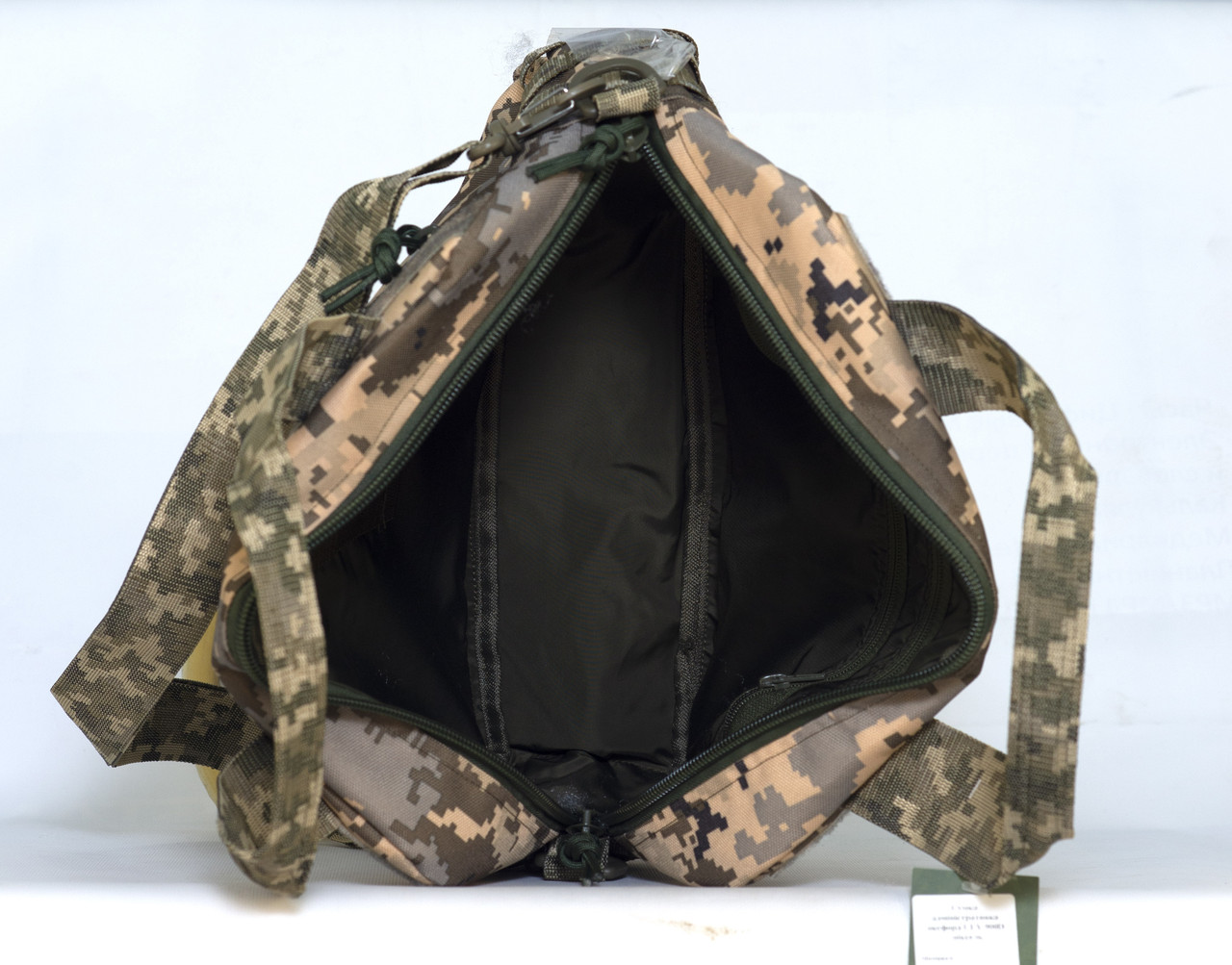 На зовнішніх і бічних стінках сумки пришиті ремені системи Molle, що дозволяють закріплювати додаткові аксесуари. Є також велкропанелі шириною 5 і 2,5 см для шевронів і патчів, що додає індивідуальності та функціональності.