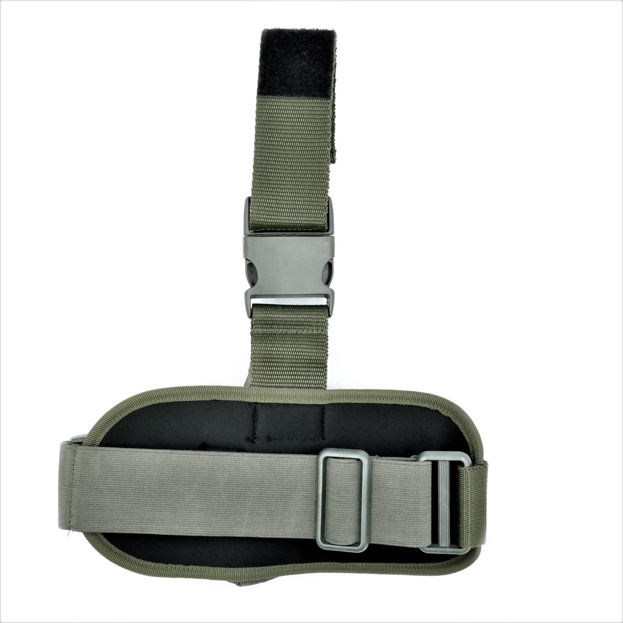 Платформа надійно закріплюється на бедрі за допомогою еластичної резинки шириною 5 см, яка має регульовану довжину. Для ще більшого комфорту та стабільності платформа фіксується на поясному ремені за допомогою удавки з поліамідної стропи з прикріпленою липучкою, що дозволяє регулювати положення платформи.