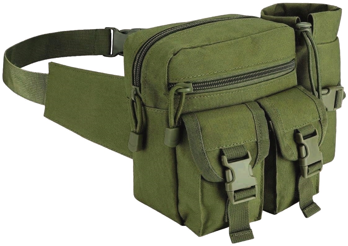 Вмістима набедренна сумка призначена для транспортировки армейської амуніції. Виготовлена з надійного прорезиненого поліестеру, цей аксесуар стане ідеальним супутником у походах, на полюванні або під час активного відпочинку.