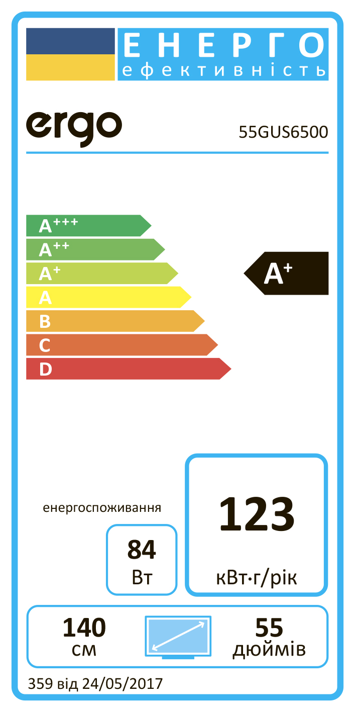 Характеристики Телевізор ERGO 55GUS6500 55" (55GUS6500)