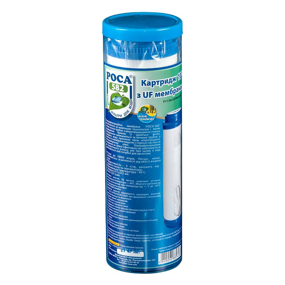 Роса-582 – це високоефективна ультрафільтраційна мембрана нового покоління, яка призначена для глибокого очищення питної води без видалення корисних мінералів. Ідеально підходить для встановлення в класичні 10-дюймові фільтри під мийку.
