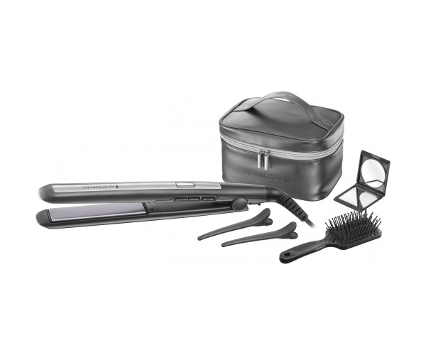 Подарунковий набір S5506GP від Remington – це все, що вам потрібно для створення ідеальної зачіски. У комплекті ви отримаєте зручний кейс для зберігання, затискачі, щітку для волосся та дзеркальце, що робить процес укладки максимально комфортним.